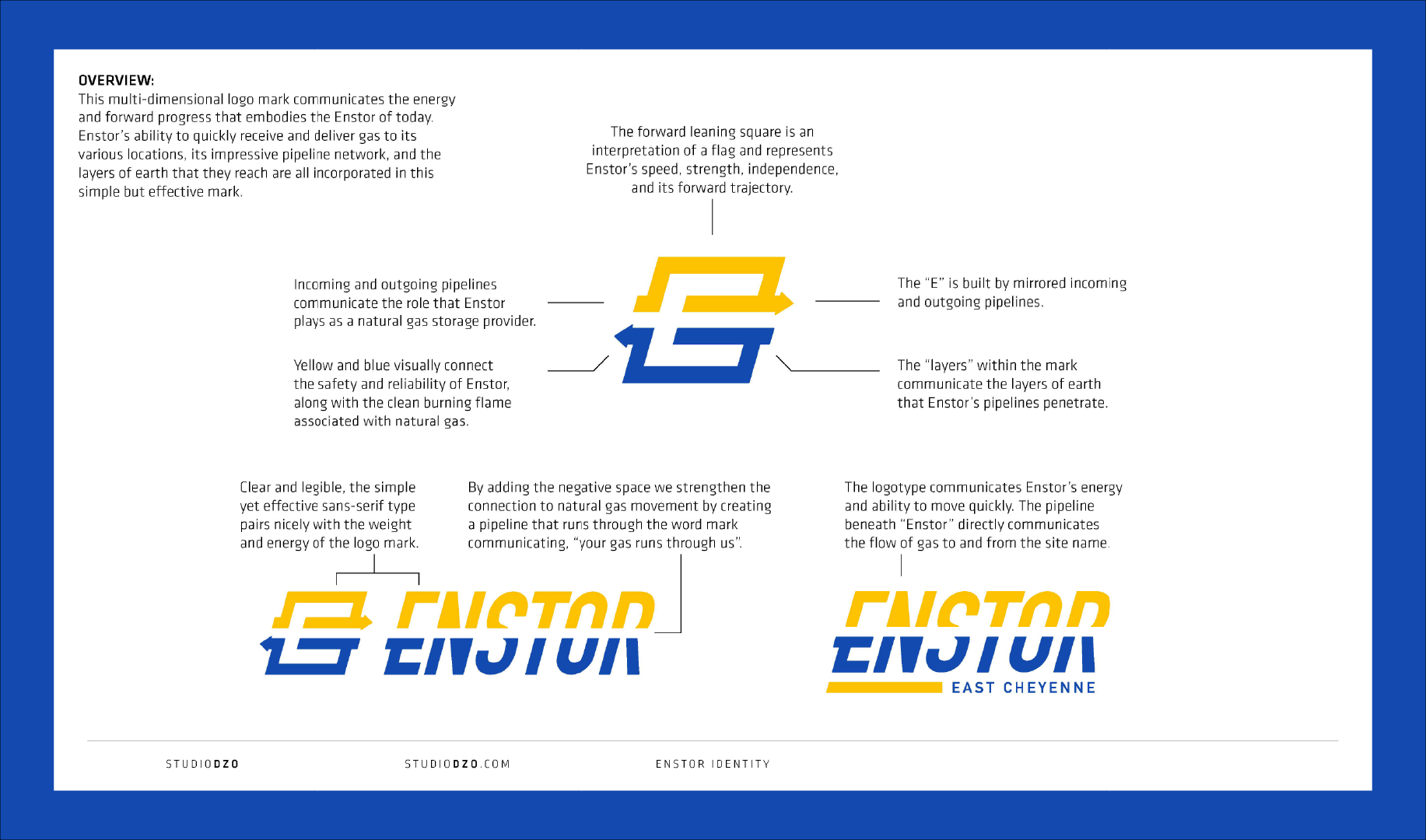 What often goes unspoken is the depth of research behind a project like this. Before we could begin the design process, we needed to understand what Enstor was and will become. Like many outside the industry, we initially had little insight into what natural gas storage truly involves. Enstor invited us to visit a site, and after seeing and experiencing the operation firsthand, our eyes were opened. Seeing the landscape, the infrastructure, and the precision gave context to the work. That perspective allowed us to build an effective and grounded brand identity—one that reflects the process, the responsibility, and the forward movement at the core of their business.