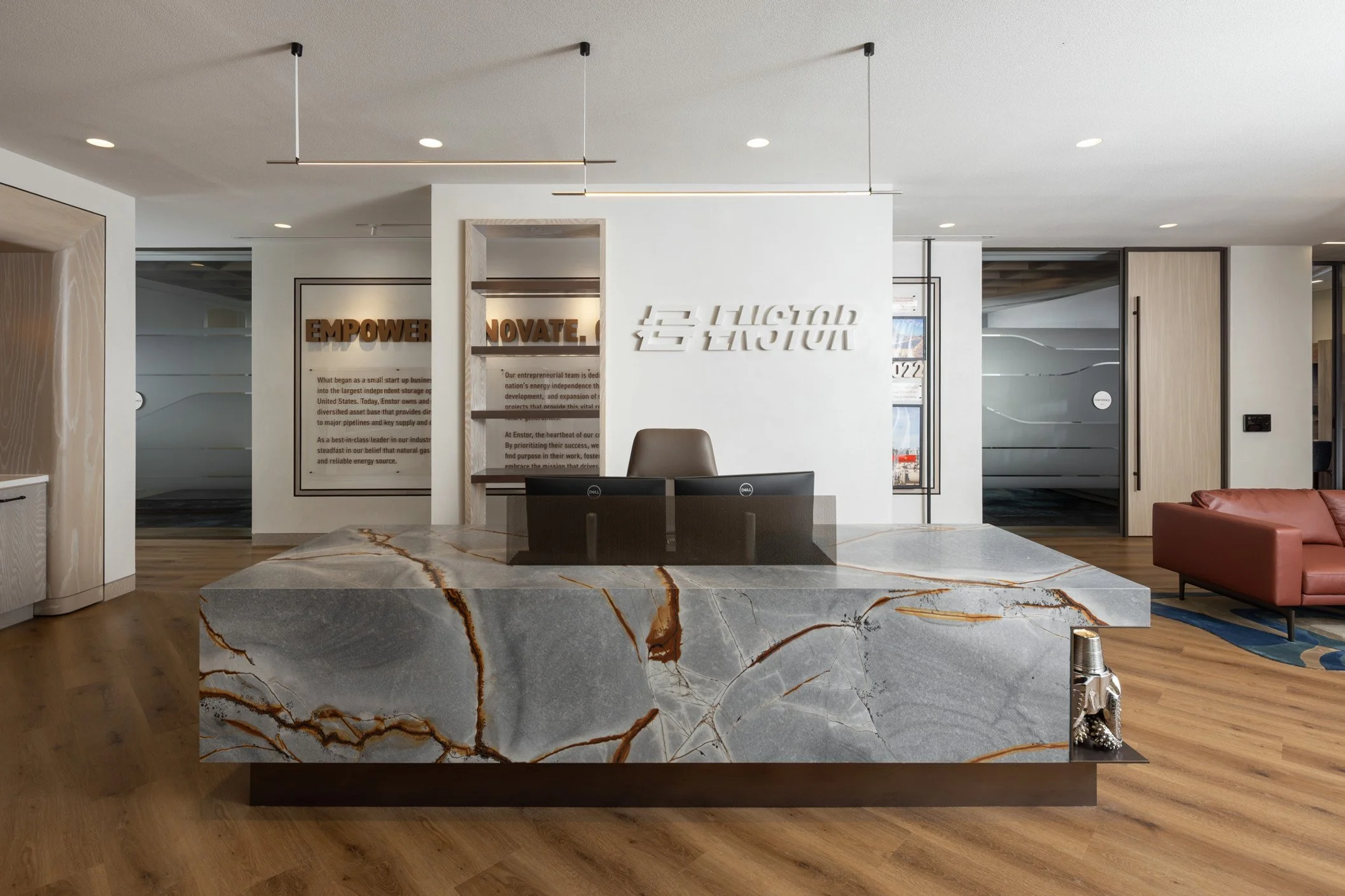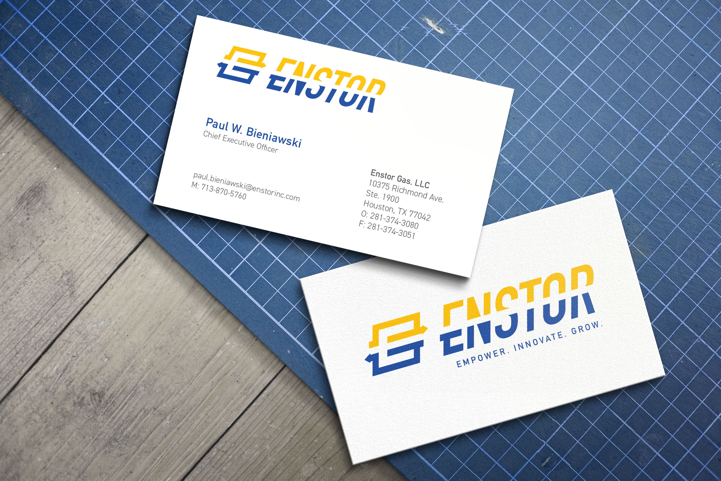 The result is more than a refreshed logo and a new set of signs. The updated identity intentionally influenced the physical environment, allowing the brand to work as effectively in the office as it does out in the field. Every touchpoint works seamlessly to tell the same story: that Enstor is growing with intention, operating with precision, and building infrastructure that connects people and places across the country.